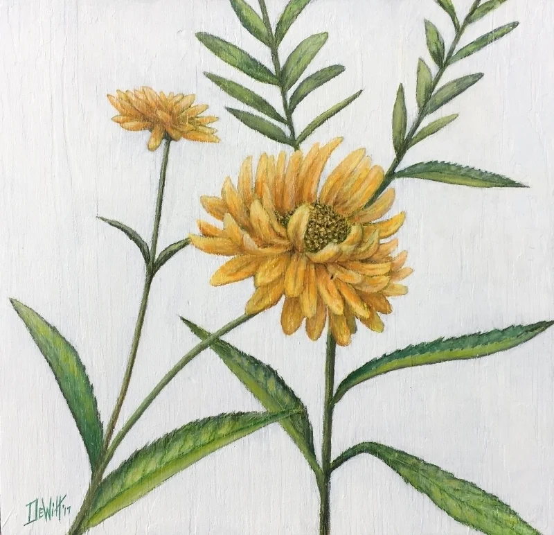 Yellow Daisy, oil on reclaimed wood panel, 11.5" x 11.75"