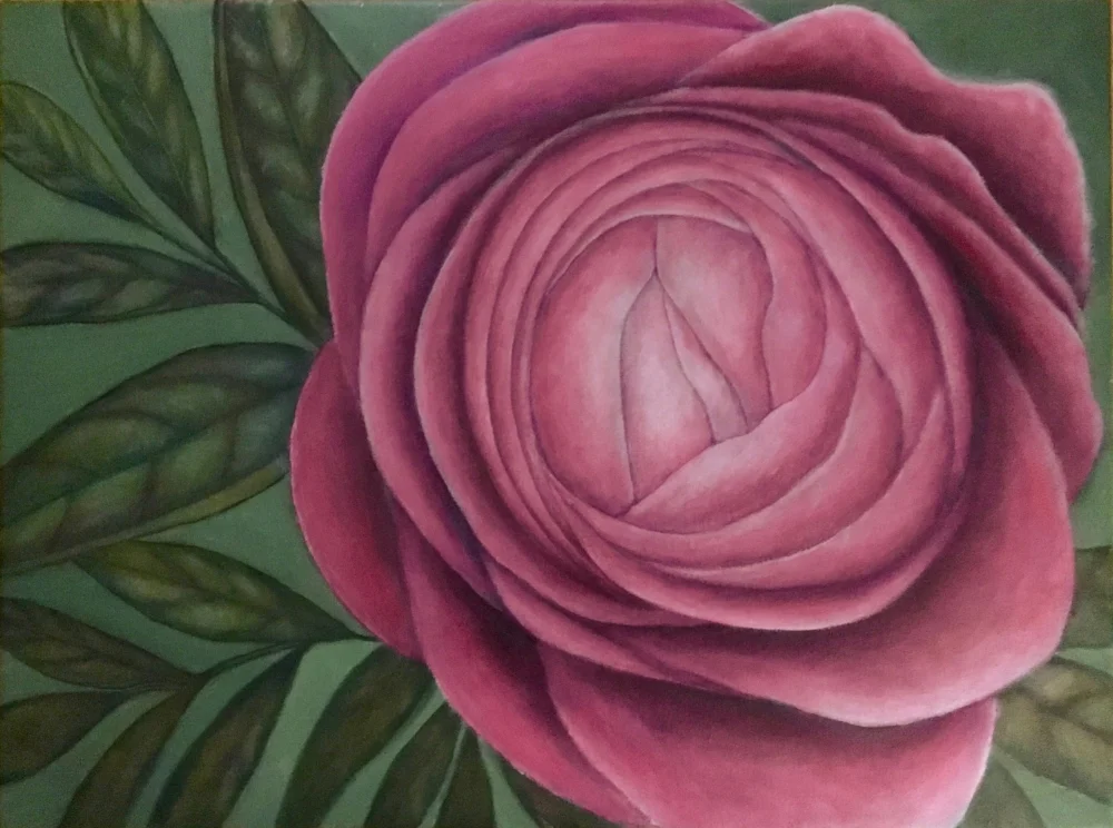 Double Rose of Sharon, oil on canvas, 11.5” x 12”, on reclaimed wood panel
